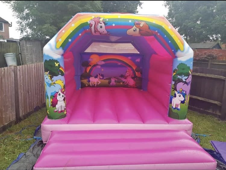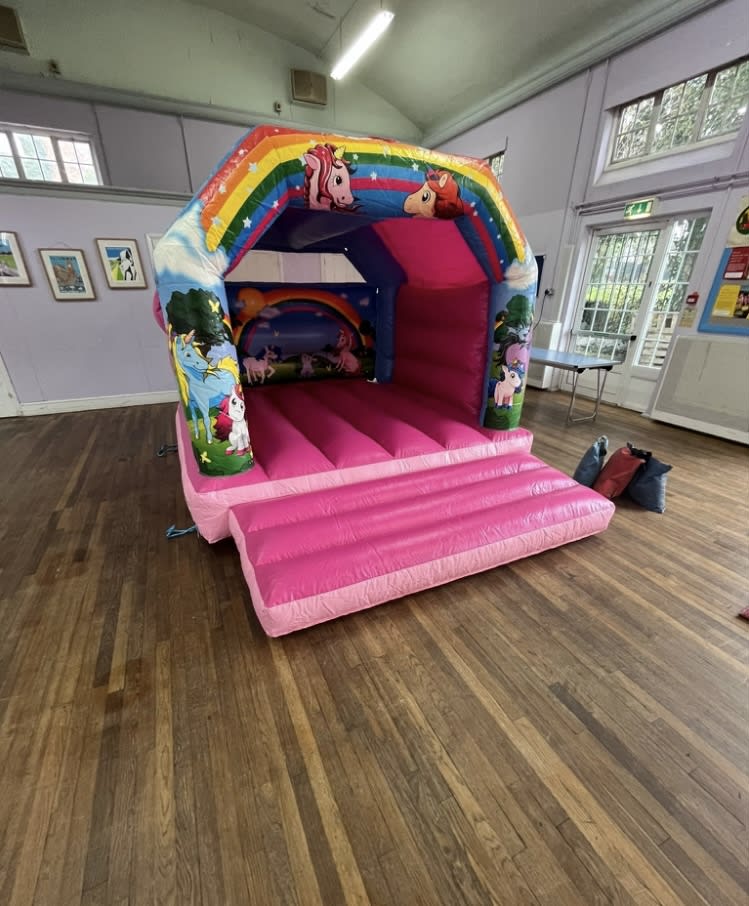 New 11X8 Unicorns Theme Bouncy Castle , our small unicorns bouncy castle is suitable for toddlers up to the age of 7 years old , great for small gardens or small low height venues , we also have matching soft play and soft play ball pits which make a great add-on to this castle and hours of fun for the kids ,