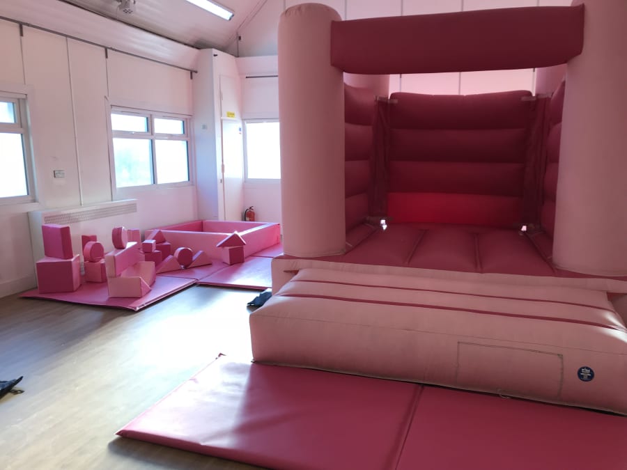 This pastel pink bouncy castle looks great with any of our soft play set up, we have a matching set that looks great with this castle Pink Soft Play And Pink Ball Pit Party Package