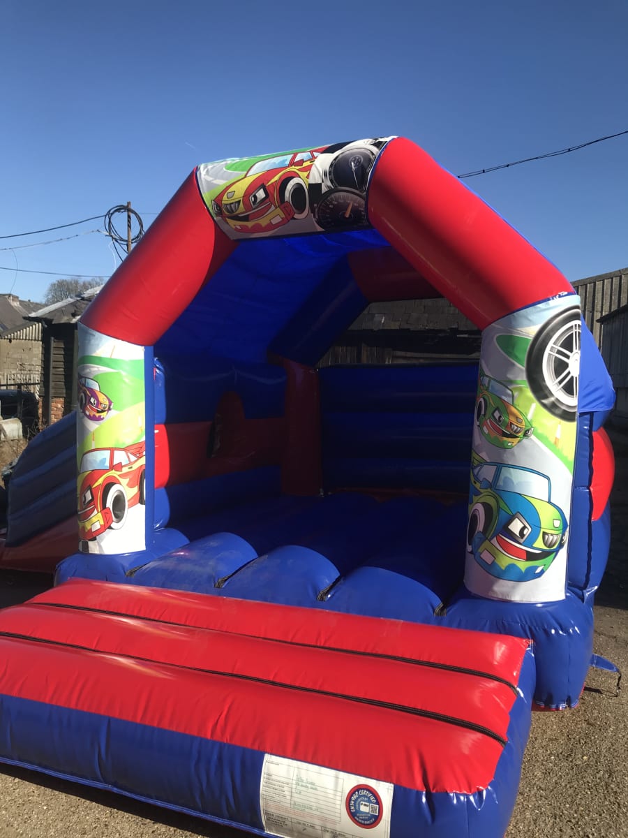 Racing Cars 11x15ft children's bouncy castle, this castle is suitable for indoor and outdoor use with built in