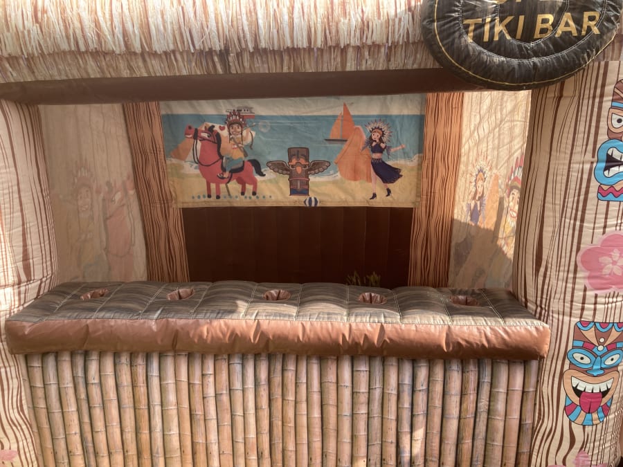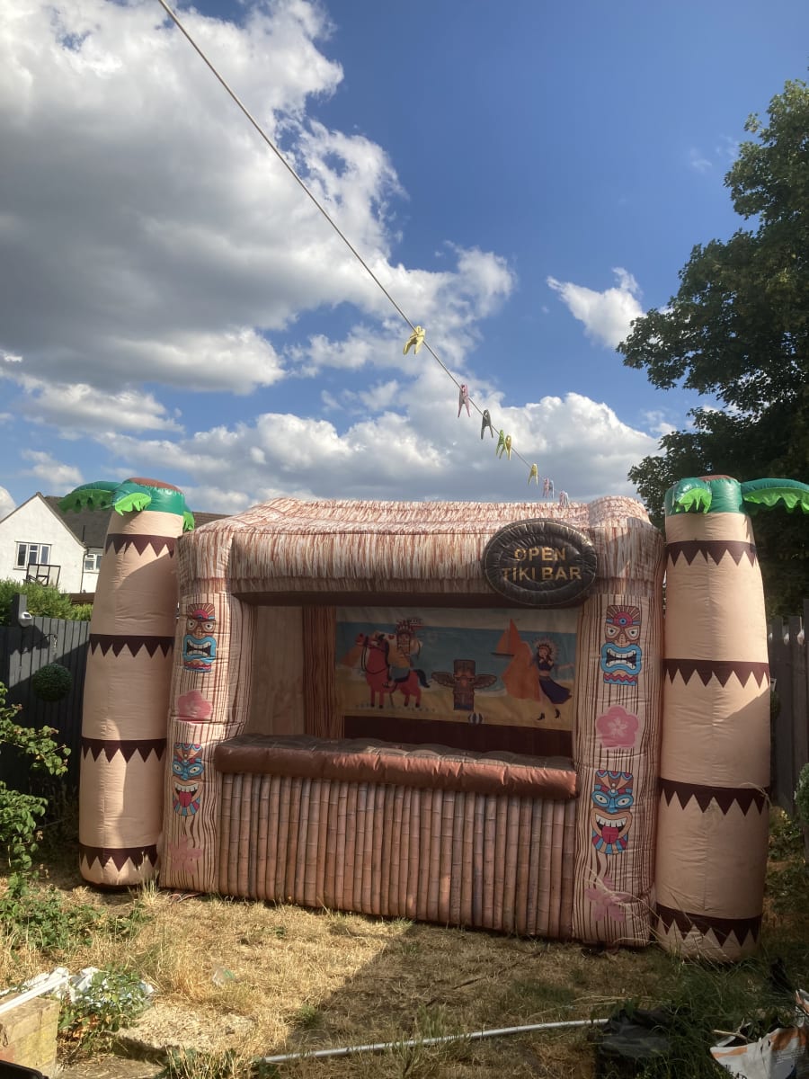 Tiki Bar 14x16ff new this year , inflatable tiki bar great for your outside garden party , has full waterproof roof so ideal for summer or winter parties , included with the tiki bar is light’s and Bluetooth sound system, bar surround, hard floor for the tiki bar if required , tables and chairs can be supplied at an additional hire charge