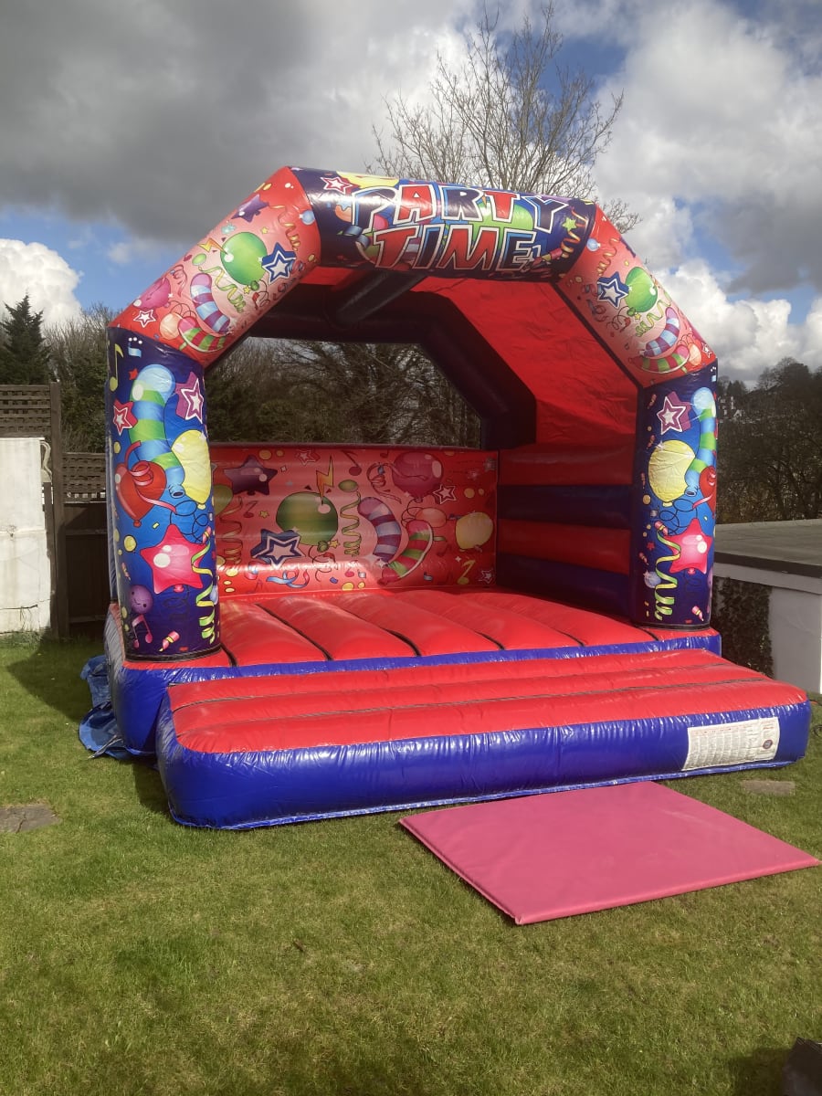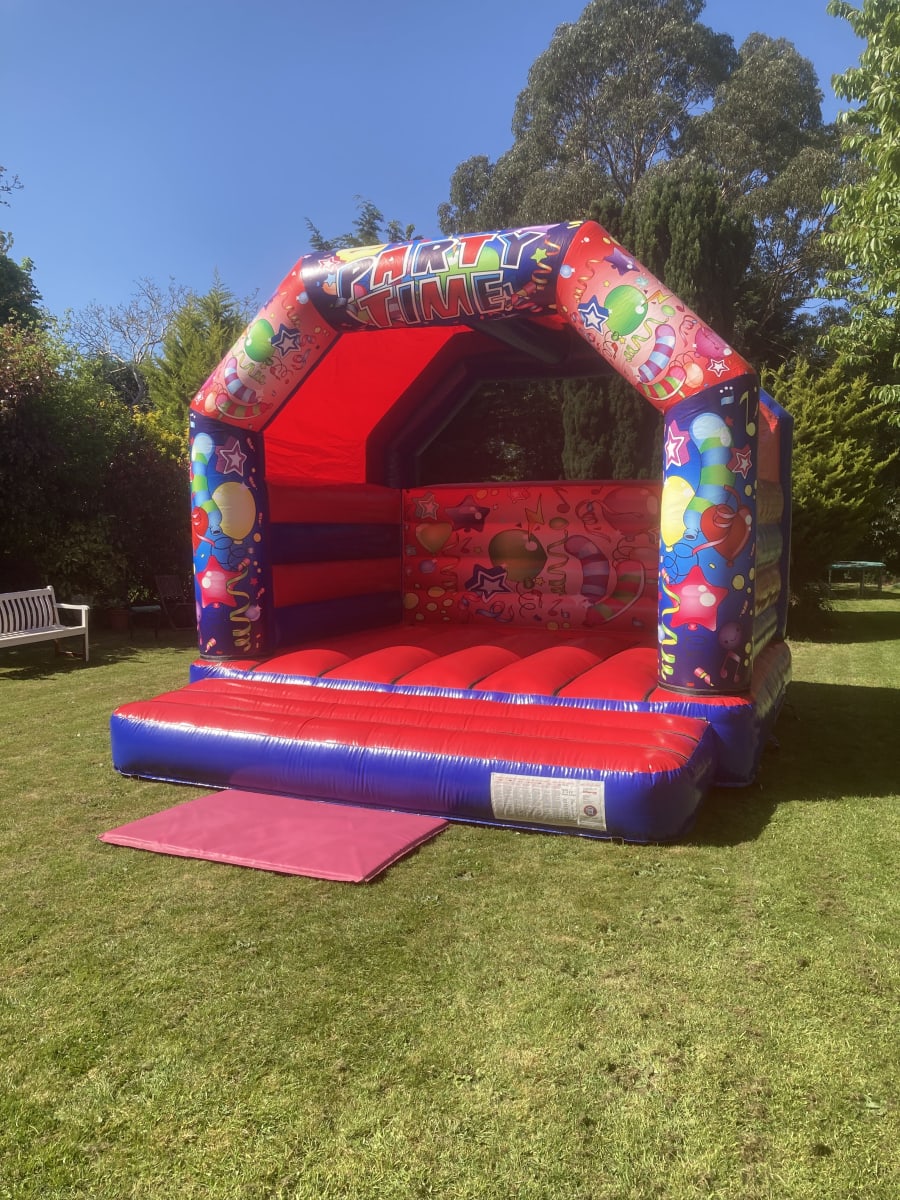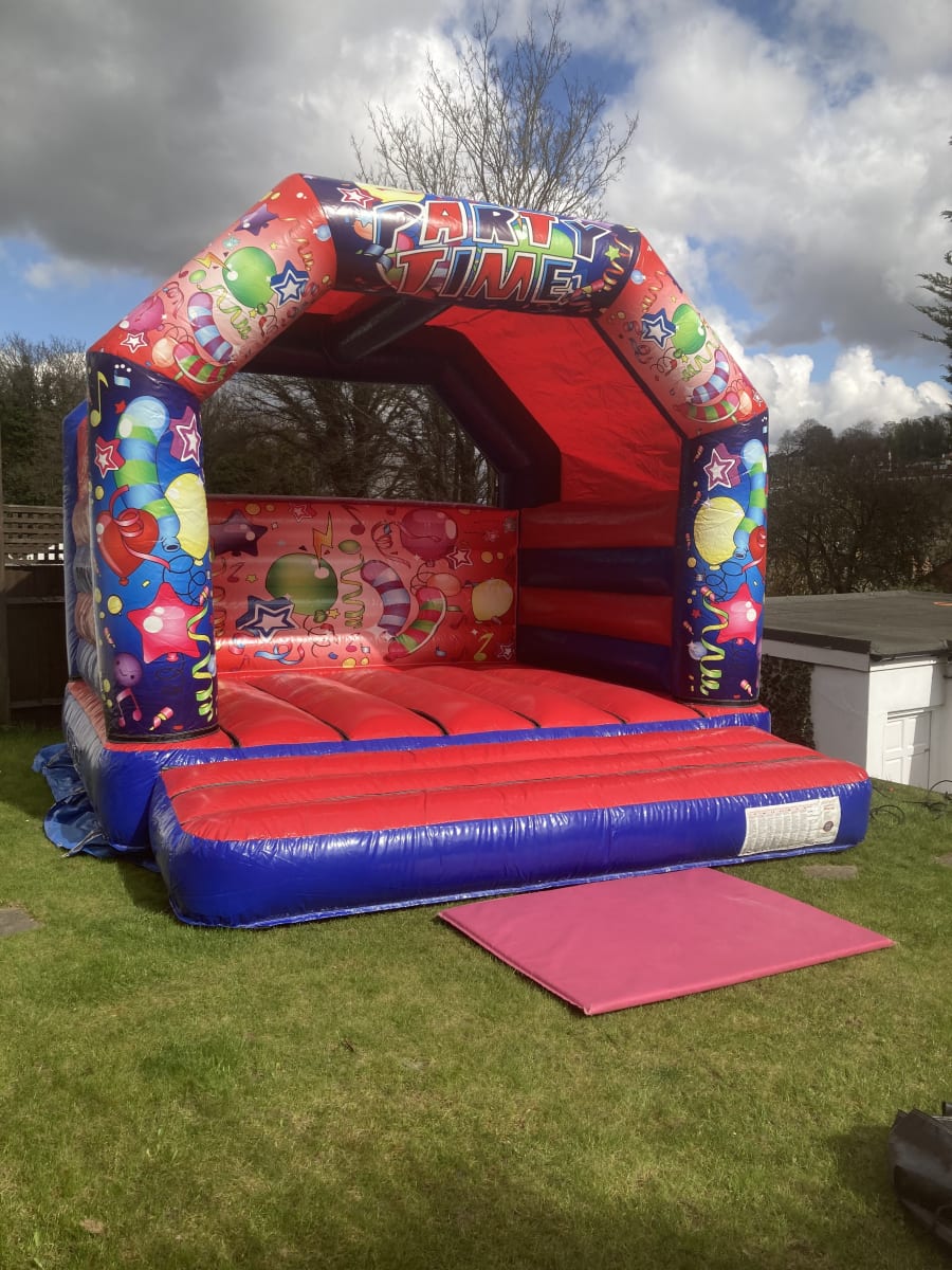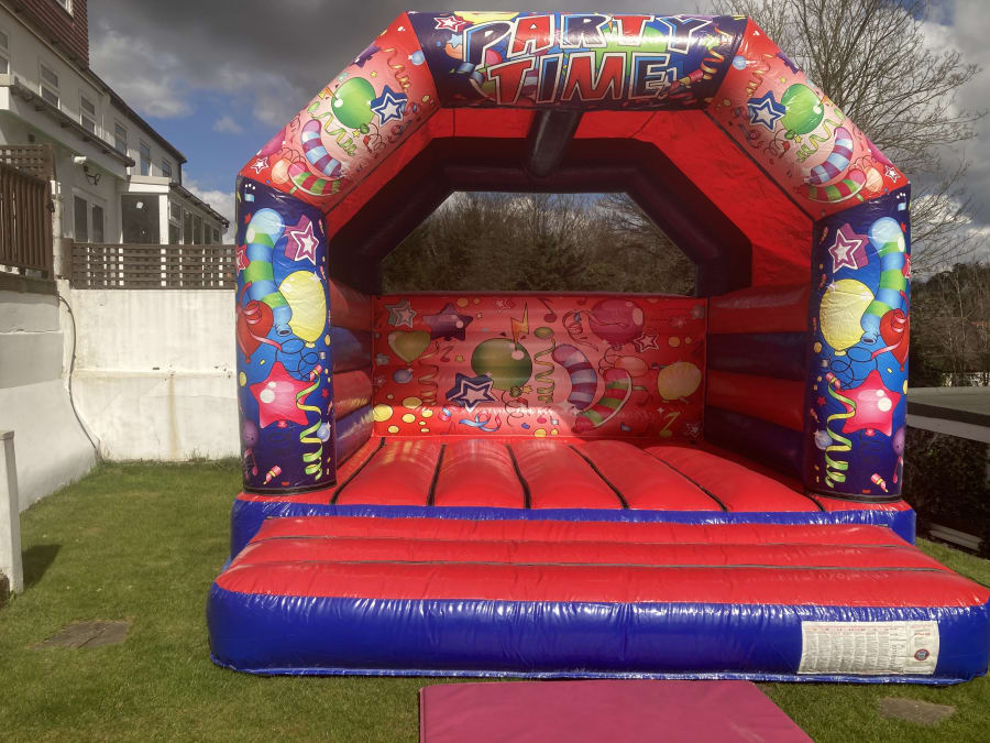 Party time adult bouncy castle this is our NEW 15x15 adults castle , this castle is suitable for children and adults and a great size to have for your event , our 16 x 16 bouncy castle has a shower cover so can be used all year round ( all out door hires are weather permitted )