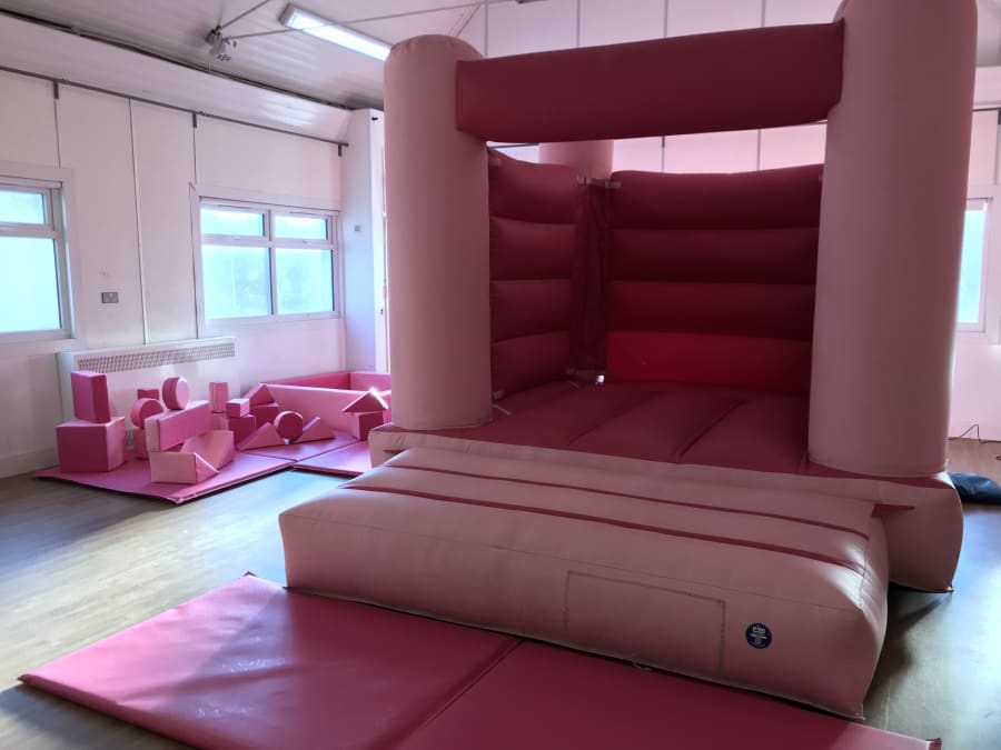 This pastel pink bouncy castle looks great with any of our soft play set up, we have a matching set that looks great with this castle Pink Soft Play And Pink Ball Pit Party Package