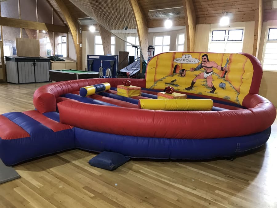Kingies gladiator duel is great for any party, the size of the gladiator is 21ft x 16ft and will require a overall space of 23ft x 18ft.