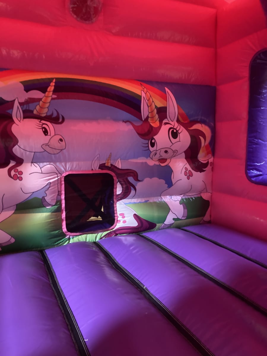 You will have a wonderful time with kingies castles with our new 12 x 17 Unicorns front slide bouncy castle