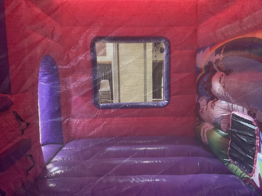 This bouncy castle is great for all weather with the shower cover , why not hire this castle for the day , with the slide at the front of the castle it is suitable for a narrow garden this castle has added fun factor,