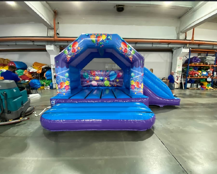 Looking to add a pop of colour and endless excitement to your next event? The 13x18 Purple & Blue Party time Slide Bouncy Castle is the ultimate choice for a memorable celebration! Perfect for children up to 12 years old, this vibrant bouncy castle guarantees hours of fun with its spacious bounce area and thrilling side slide. Whether it’s a birthday bash, school fete, or family gathering, this show-stopping attraction will be the talk of your party.