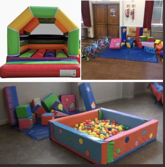 Rainbow soft play package , 21 piece rainbow soft play and 5x5 soft play ball pit and matching bouncy castle are great for any event , where there are toddlers to entertain.