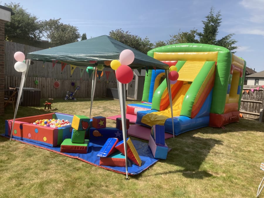 Rainbow Soft play package and matching Rainbow bouncy castle