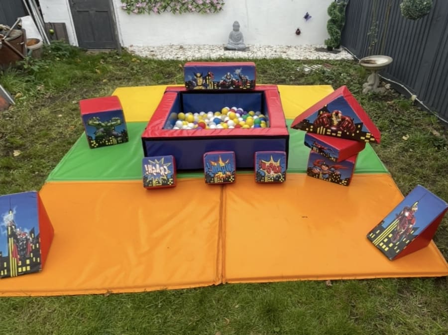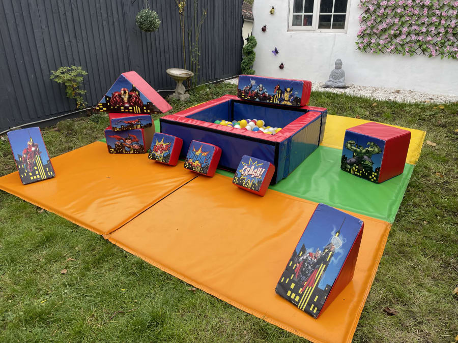 - 10-piece Superheroes soft play shapes and matching ball pit. ✅