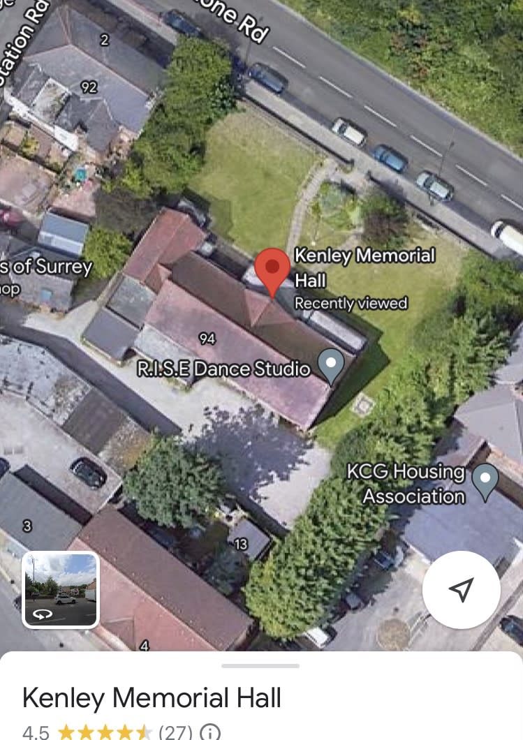 Kenley Memorial hall is located on the Godstone road, between Purley and Whyteleafe, the access into the hall is good via the main front door which is set back of the road and down a set of steps, there is disabled access via the rear entrance , there is also a car park at he rear of the hall , access to the car park is off station road